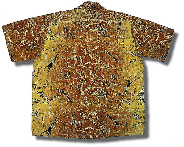This is an outstanding Kamehameha cotton border print. I decided to show you the front and the back, to illustrate the quality and craftsmanship that went into the manufacture of many of these old shirts.