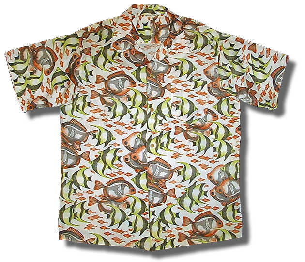 This is the only fish print of this type I've ever come across. The label is Made In Hawaii. When I found it it was deadstock.