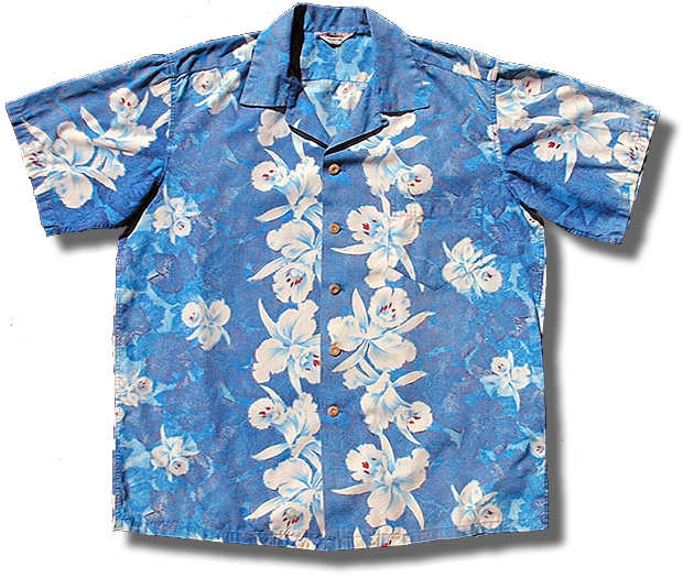 A stunning Kamehameha border print of orchids set on a background of stenciled leaves.